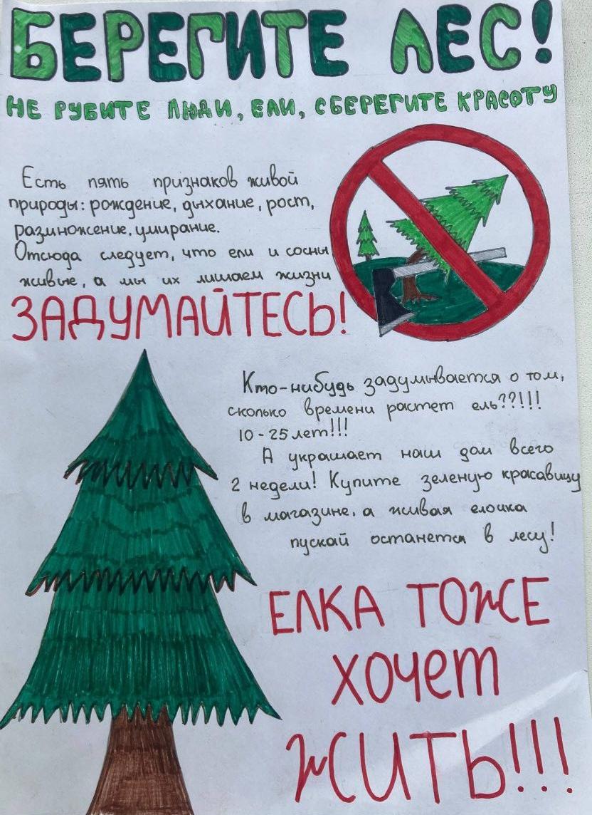 Наши леса- это наша гордость. Лес- это легкие земли! Вырубка леса несет огромный ущерб природе и здоровью человека. Берегите природу и покупайте искусственные елки, они тоже очень красивые и прослужат вам много лет.